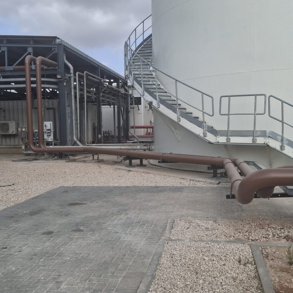 The new pipeline will be connected to a new Pressure Reduction and Metering Station (PRMS) that will be built near the power station. Except for the connection area (which includes crossing a road), the two new pipelines will be installed above ground along the route until the “final” connection point to the existing pipeline near the storage tank area.